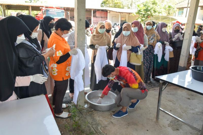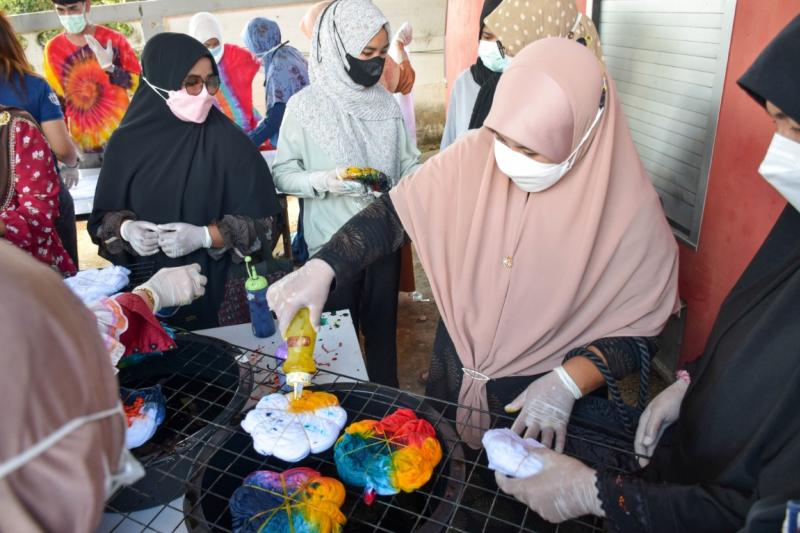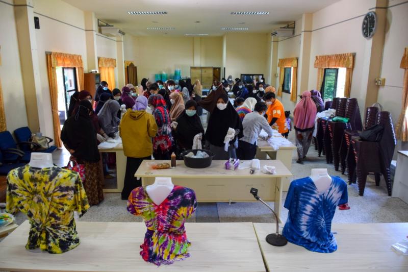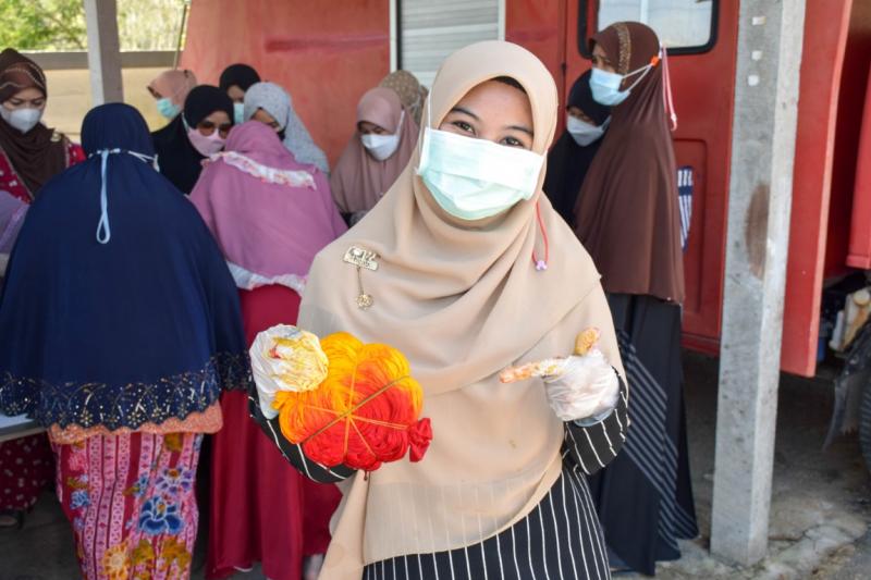 โครงการพัฒนาศักยภาพกลุ่มสตรีตำบลยะหา อบรมให้ความรู้และฝึกการทำผ้ามัดย้อม