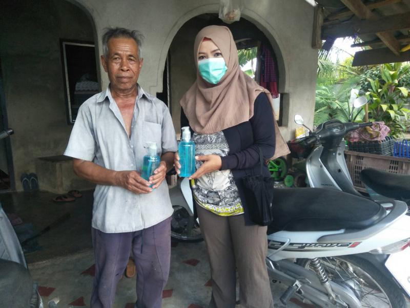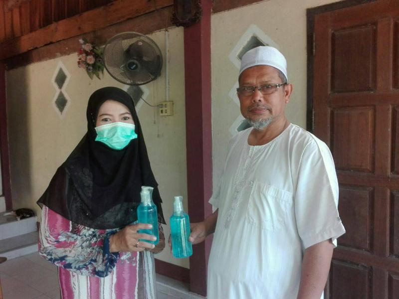 องค์การบริหารส่วนตำบลยะหา มอบเจลแอลกอฮอล์ ให้แก่มัสยิด และโรงเรียนบ้านลากอ
