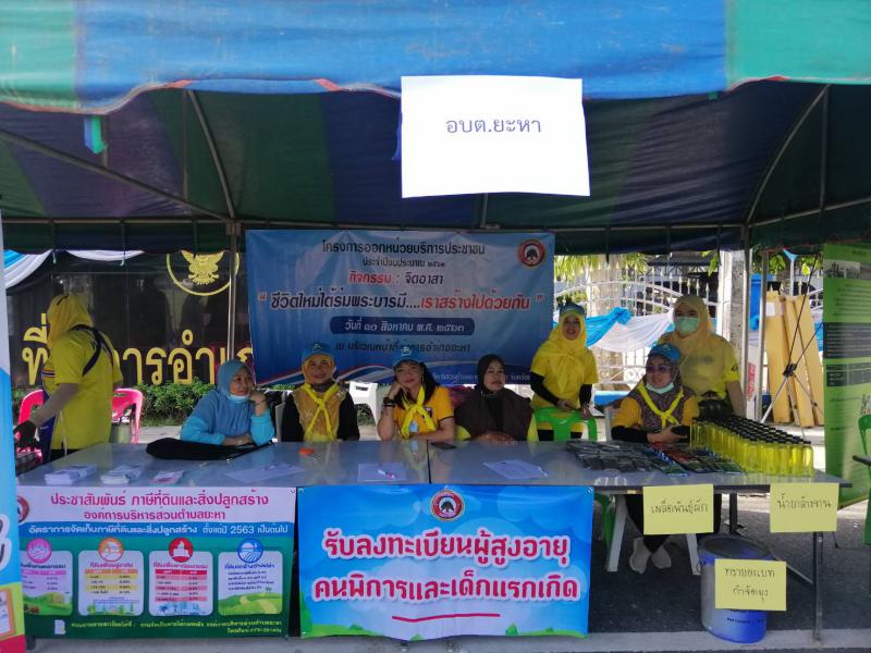 รายละเอียด : วันที่ 10 สิงหาคม 2563 องค์การบริหารส่วนตำบลยะหา ได้จัดโครงการออกหน่วยเคลื่อนที่บริการชุมชน กิจกรรม จิตอาสา “ชีวิตวิถีใหม่ใต้ร่มพระบารมี...เราสร้างไปด้วยกัน” ณ ที่ทำการอำเภอยะหา จังหวัดยะลา โดยมีกิจกรรม บริการแก่ประชาน ดังนี้