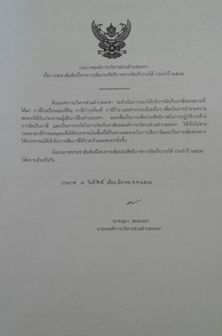 ประชาสัมพันธ์โครงการเพิ่มประสิทธิภาพการจัดเก็บรายได้ ประจำปี 2562
